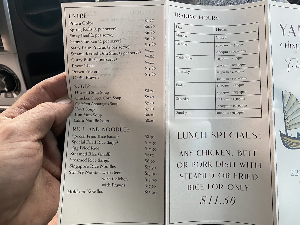 Welcome to Yangtze Chinese Restaurant, located at 227 Main Rd, Blackwood, SA. This gem serves a delightful array of authentic Chinese cuisine that promises an experience rich in flavor and tradition. The menu is a tapestry of enticing options, from flaming satay squid and the beloved special fried rice to the standout fresh chili steak. Each dish is crafted with fresh ingredients, ensuring a taste that sings with authenticity.